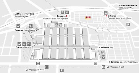 展览场地位于 A 94 高速公路上,请遵循时事交通管理系统的指示,您的导航系统只能作为参考。
