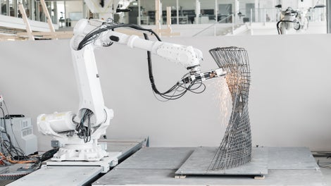 MESH 技术是一种用于钢筋混凝土结构的数字化方法,可以通过自动化预制工艺生产复杂或弯曲的钢筋笼。以这种方式创建的三位Mesh结构同时作为模板和钢筋,并填充特定的混凝土混合物。