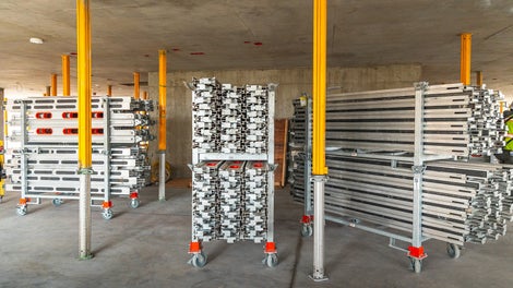 PERI’s Swivel Head Table system secured slab edges safely while keeping crews productive. For the interior infill, the debut of the SKYFLEX system proved a game-changer. Its modular 8’x8’ grid allowed crews to handle complex geometries and cantilevered sections while achieving a rapid 4–5 day cycle per deck.