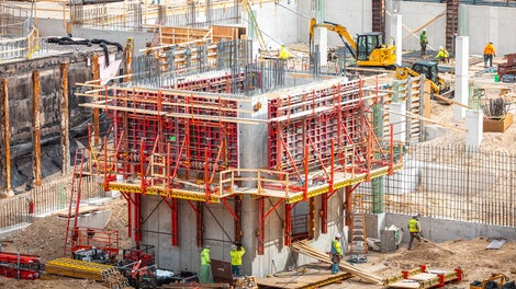 The MAXIMO panel formwork system, paired with RCS hydraulic climbing technology, further streamlined core construction. Hydraulic climbing freed the crane for other tasks, while hydraulic stripping elements made form removal faster and more efficient.