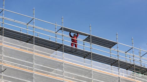 Anpassungen an die Gebäudeform erfolgen im einheitlichen Raster von 25 cm, das bietet hohe Flexibilität für komplexere Fassadeneinrüstungen. -