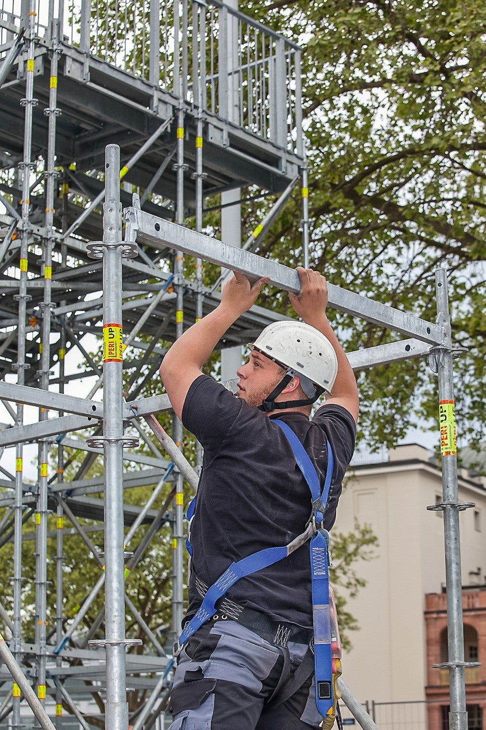 Die PERI UP Gerüsttreppe für den öffentlichen Bereich kann flexibel an die Anzahl der Benutzer, an Geometrie und Lasten angepasst werden. -