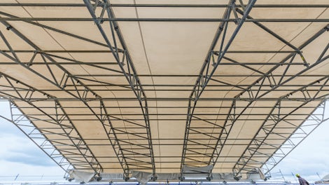 Sie können das PERI UP Wetterschutzdach entweder verfahrbar oder fest montieren. Die verfahrbare Variante bietet Ihnen den Vorteil, dass sich einzelne Dachabschnitte bei Bedarf einfach öffnen lassen.