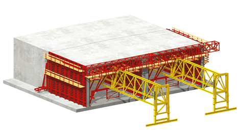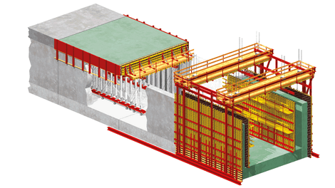 Des opérations rapidesDes opérations de coffrage et de décoffrage simples et un positionnement aisé du chariot de coffrage, ainsi que des options flexibles pour les procédures de déplacement. Le portique peut être entraîné hydrauliquement ou électriquement pour des processus de construction économiques.