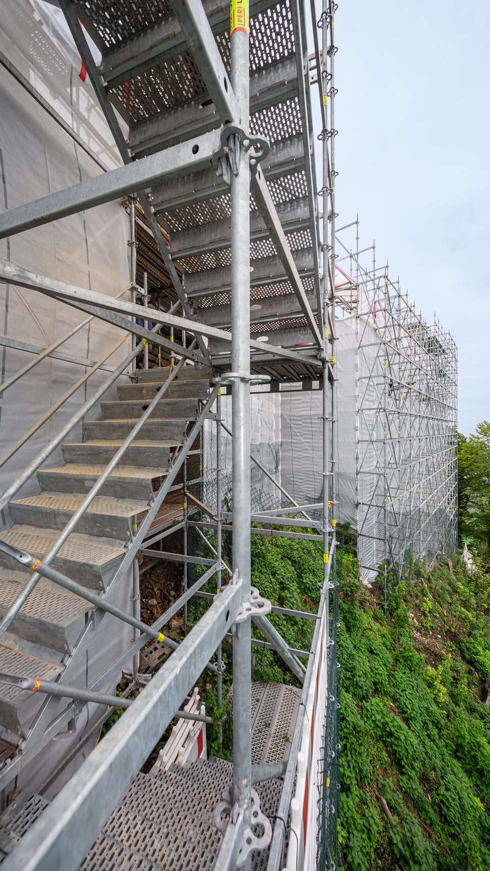 Die Bautreppe lässt sich entweder in ein bestehendes PERI UP Fassadengerüst integrieren oder als eigenständige Gerüsttreppe nutzen.