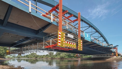 Skela se jednostavno prilagođuje varijabilnim razmacima između čeličnih nosača.