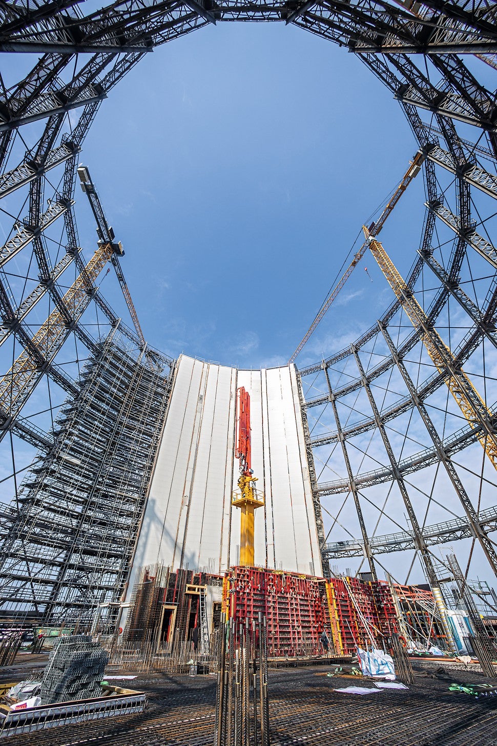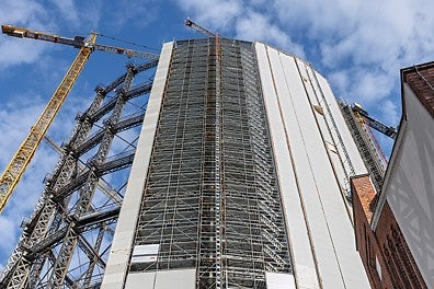 Der Gasometer auf dem EUREF-Campus in Berlin-Schöneberg wird mit Unterstützung von PERI instandgesetzt.