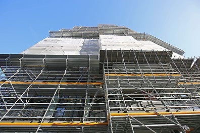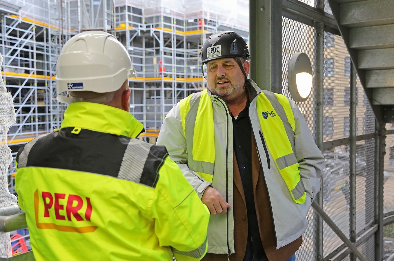 "The reason we’ve used the PERI UP system is because it’s the most versatile system out there. The different deck sizes available in the PERI UP range have been beneficial as we’ve been able to install a deck arrangement that accommodates the shape of the building. In addition to the decks, using components like the console brackets meant that we could get around every part of the building safely, covering all the gaps.”