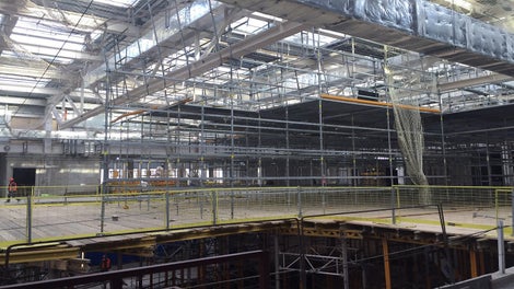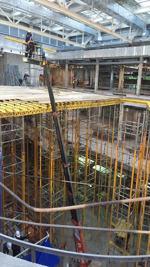 - Опорные башни на стойках MLTIPROP высотой 12 м обеспечили основу для развертывания рабочих платформ на основе систем строительных лесов PERI UP Flex c использованием настилов UDI
