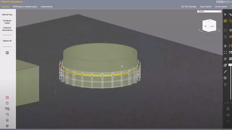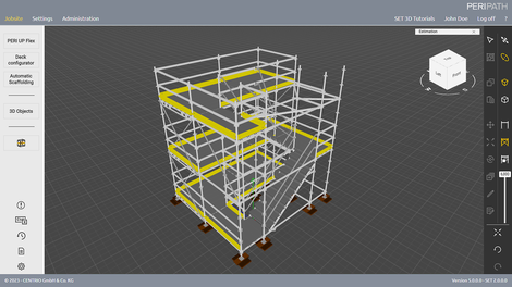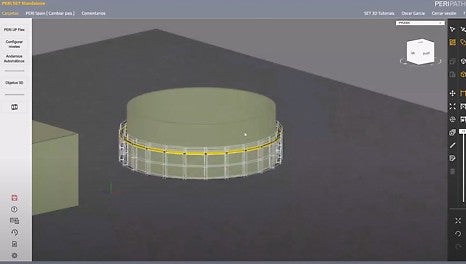A função automática ajuda a planejar as necessidades de andaimes circulares. Com apenas alguns cliques, o SET organiza automaticamente as unidades de andaime de acordo com o raio necessário. Além disso, é possível visualizar o ambiente em que o andaime está sendo planejado por meio da colocação de corpos 3D.