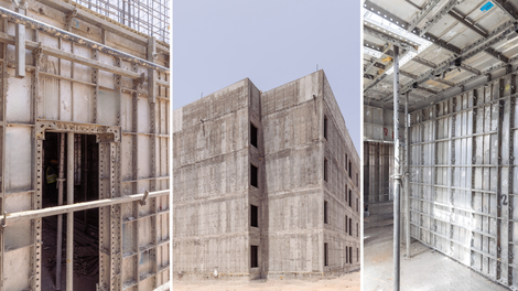 The PERI Monolithic method relies on an in-situ casting process using lightweight formwork components. Engineered for high consistency and minimal variation, it is particularly well-suited for repetitive construction applications such as mass housing and student residences.