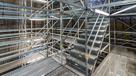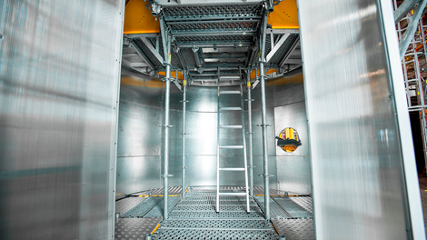 При помощи элементов PERI UP Flex создавать безопасные рабочие платформы можно даже в узких, труднодоступных местах. Это особенно актуально на целлюлозно-бумажных комбинатах, поскольку конструкции возводятся в промежутках между бумагоделательными машинами. Модульная система позволяет возвести конструкции сложной формы в узких резервуарах и варочных котлах типа Камюр. При проведении капитального ремонта временная кровля из лесов защищает оборудование от попадания влаги и других веществ.