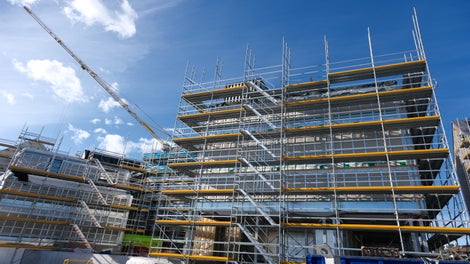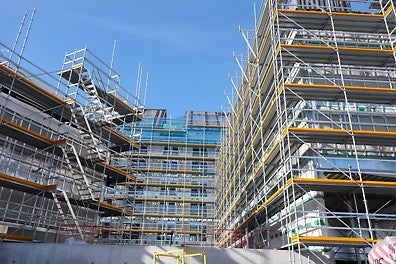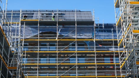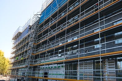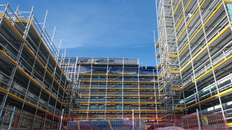 Under vårt besök på byggarbetsplatsen visar Stefan ställningarna från PERI UP Flex, som byggts med precision och noggrannhet. Han framhäver samarbetet: ”Vi valde PERI för att de hade rätt lösningar för oss. PERI kunde leverera så här mycket material i tid och vi tycker att materialet från PERI är enkelt och säkert att bygga. Vi tycker att allting i vårt samarbete har känts mycket positivt och funkat väldigt bra”.