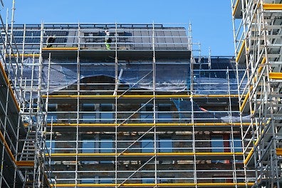 När vi ser upp mot byggnaderna får vi en stark känsla av säkerhet i projektets utförande. Det öppna samarbetet mellan SNT och PERI framgår tydligt. Vi lämnar byggplatsen med en känsla av tillfredsställelse över hur ställningarna från PERI UP Flex ramar in det växande bostadsområde.