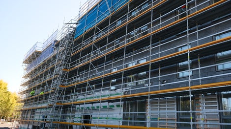 En kall, men solig oktoberdag anländer vi till Nyköping, där byggställningarna från PERI reser sig ståtligt över Kvarteret Brädgården. Detta utvecklingsprojekt i den södra delen av stadskärnan förvandlar en tidigare industrifastighet till fyra moderna byggnader med 2-6 våningar, som kommer att erbjuda cirka 330 bostäder, ett äldreboende och marknära lokaler.